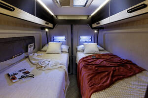 Der großzügige Wohnbereich mit separatem Schlafraum und Einzelbetten bietet hohen Komfort und viel Bewegungsfreiheit.