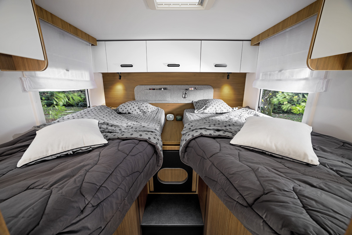 Der großzügige Wohnbereich mit separatem Schlafraum und Einzelbetten bietet hohen Komfort und viel Bewegungsfreiheit.